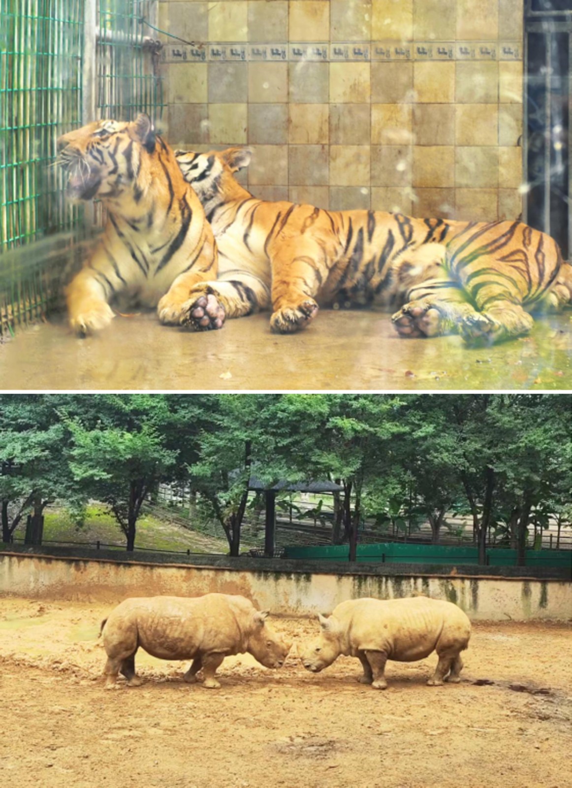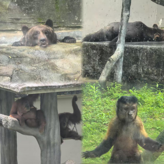 在老虎園區(qū)里,威風(fēng)凜凜的白虎和東北虎隔著籠子互相打量,時(shí)而發(fā)出低沉的吼聲交流,而另一邊的兩頭東北虎則親密地緊挨在一起打盹,斑駁的樹(shù)影灑在它們金黃的皮毛上。不遠(yuǎn)處的犀牛區(qū),兩只體型龐大的白犀牛正在上演領(lǐng)地之爭(zhēng),它們用粗壯的角互相頂撞,揚(yáng)起陣陣塵土,發(fā)出沉重的鼻息聲;非洲大羚羊區(qū)最是熱鬧,高大的羚羊們溫順地低下頭,伸著脖子吃著小朋友親手投喂的食物,長(zhǎng)長(zhǎng)的睫毛在陽(yáng)光下忽閃忽閃。樹(shù)冠間,靈巧的長(zhǎng)臂猿扒著樹(shù)干蕩著秋千,偶爾還會(huì)停下來(lái)好奇地觀察下方拍照的游客。園區(qū)主干道上,飼養(yǎng)員牽著一匹可愛(ài)的袖珍小馬漫步,珍珠馬的脖子上系著的鈴鐺隨著步伐發(fā)出清脆的聲響。整個(gè)園區(qū)洋溢著人與動(dòng)物和諧相處的氛圍。